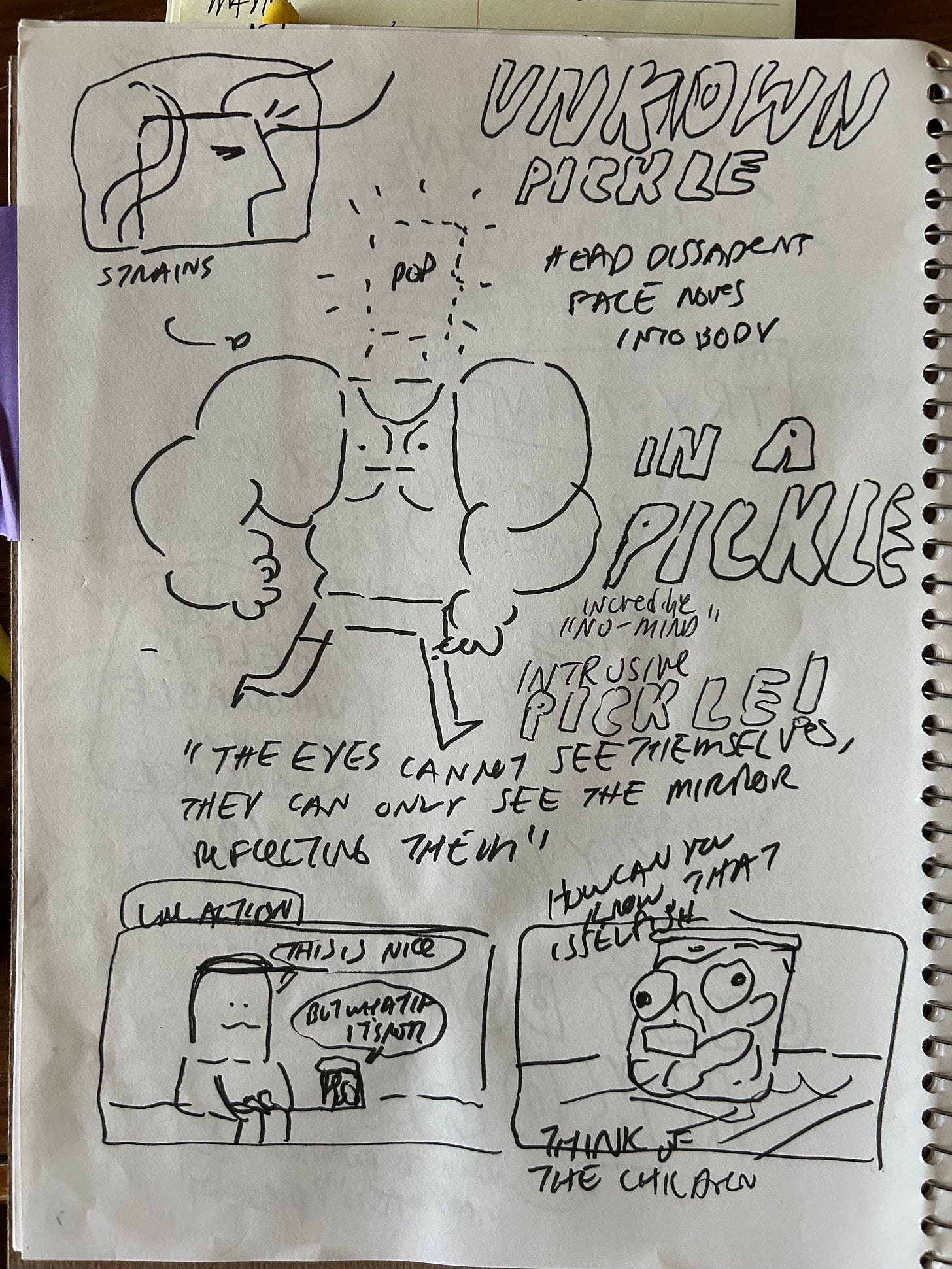 I finished the hike, writing in my notes app as fast as I could, then tried as hard as I could to hold the images in my memory. One thing about Tourrette’s is that it typically comes with a triad of other neurdivergencies, OCD+ADHD+Autistic traits, Your memory can be quite good for facts, patterns, and random trivia, but not so good in the short term. I held on to the image until I could get to the nearest sketchbook. I did stop at Taco Bell first, just to be completely transparent.